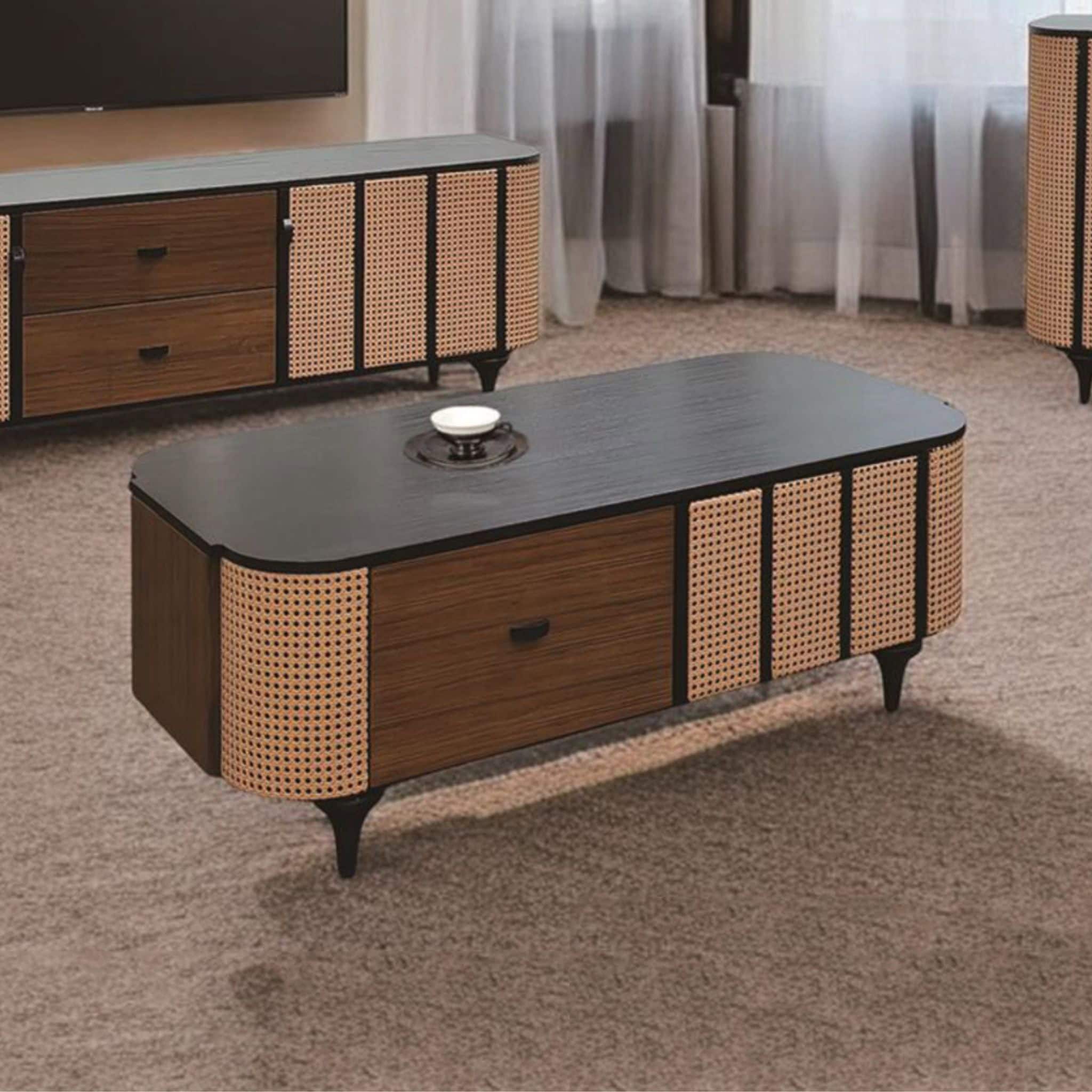 • Crafted From HDF Solid and HDF With Wood Veneer, Enhanced With PP Rattan Detailing