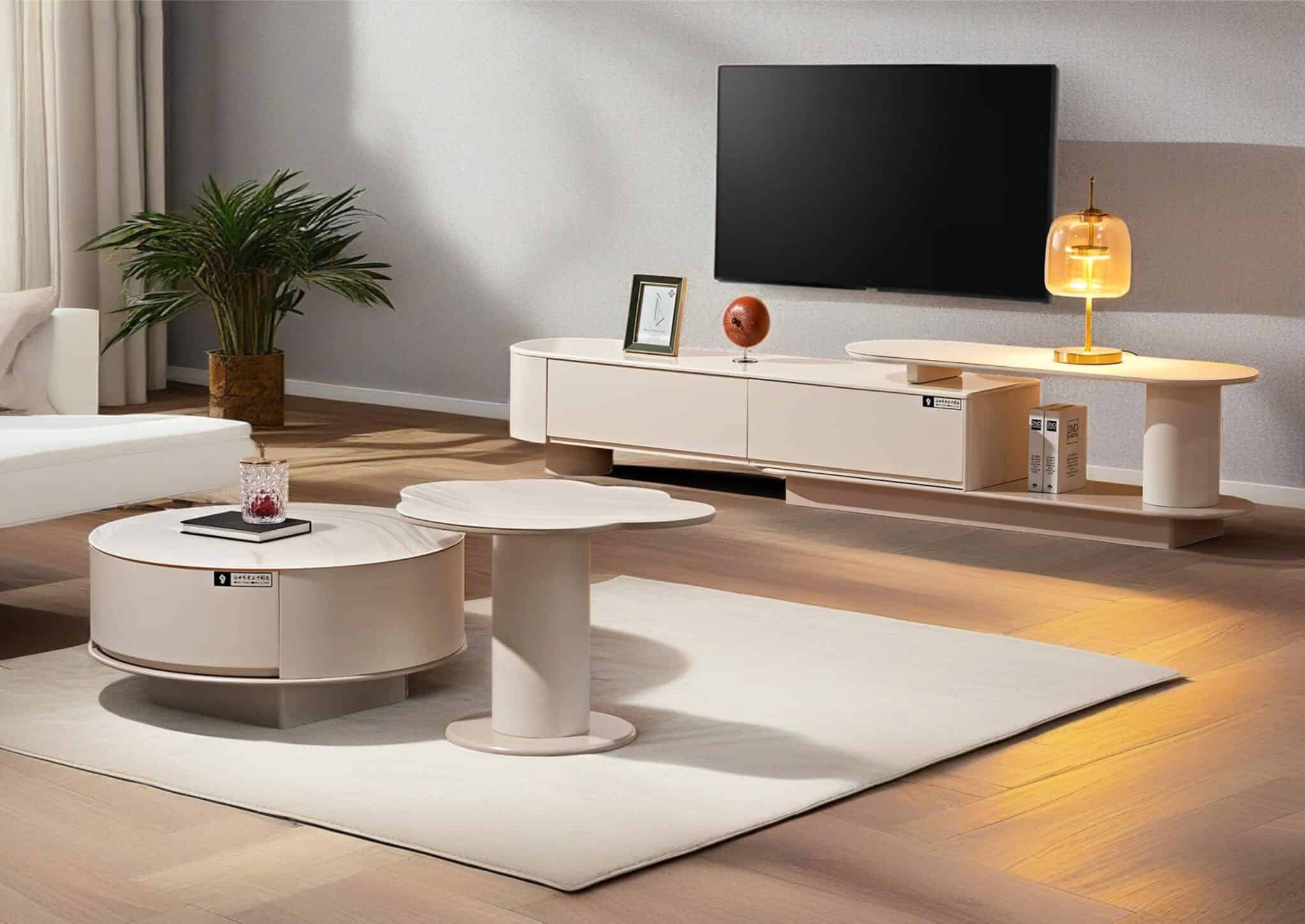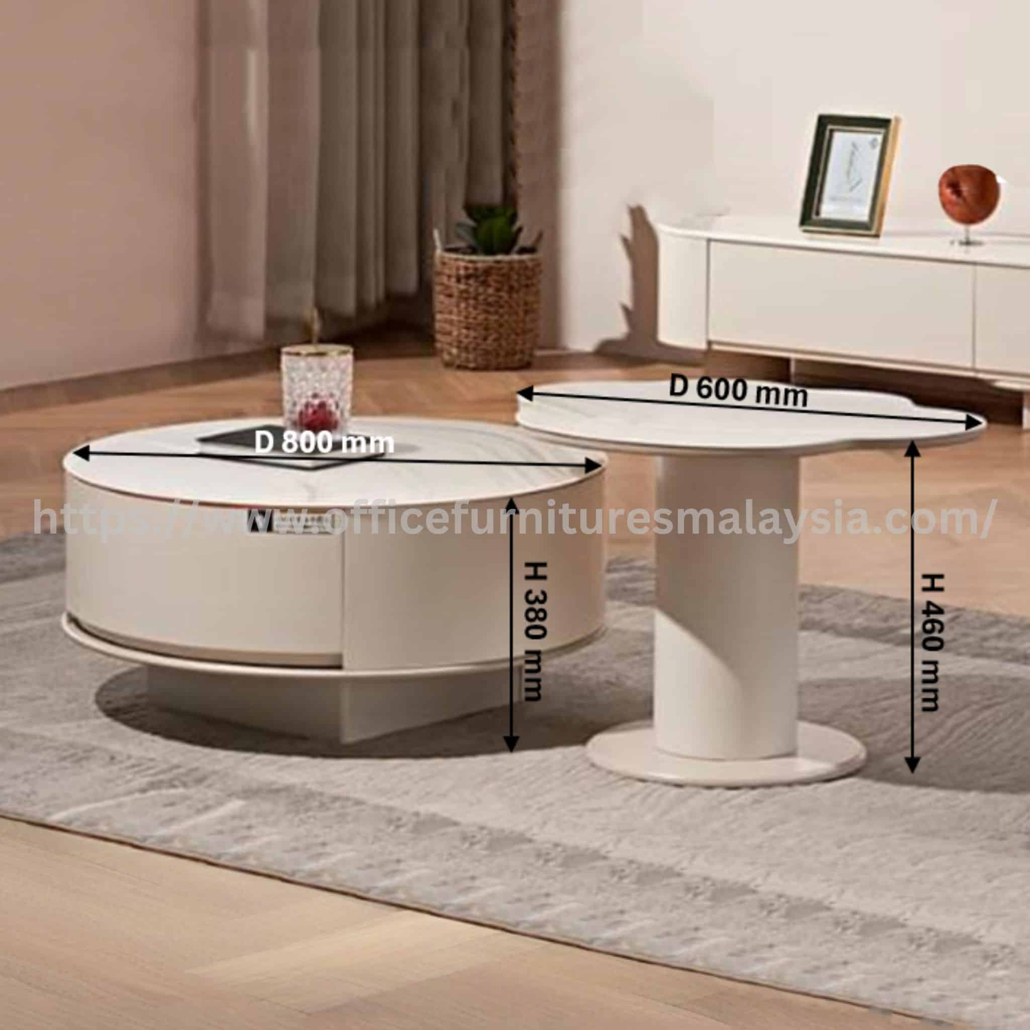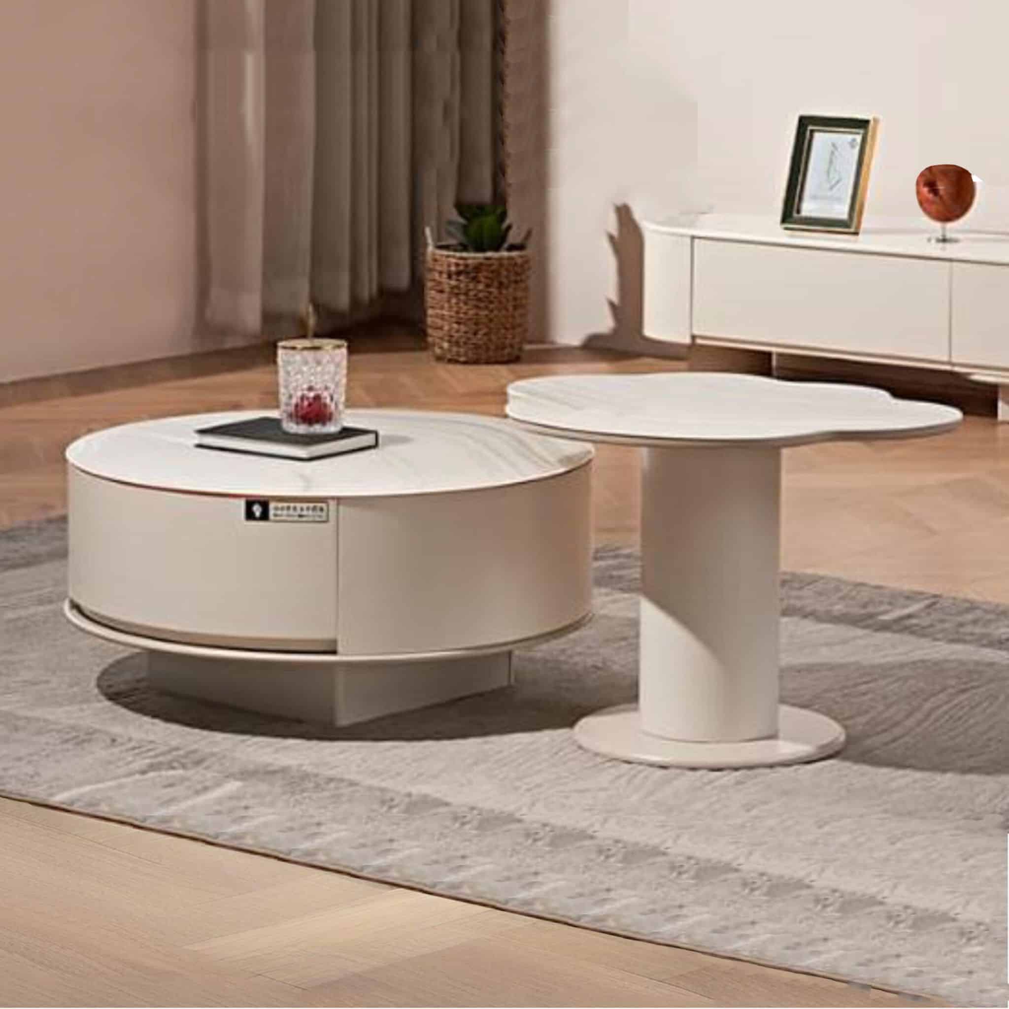 • Dual-Table Design Featuring a Round Coffee Table and Matching Side Table