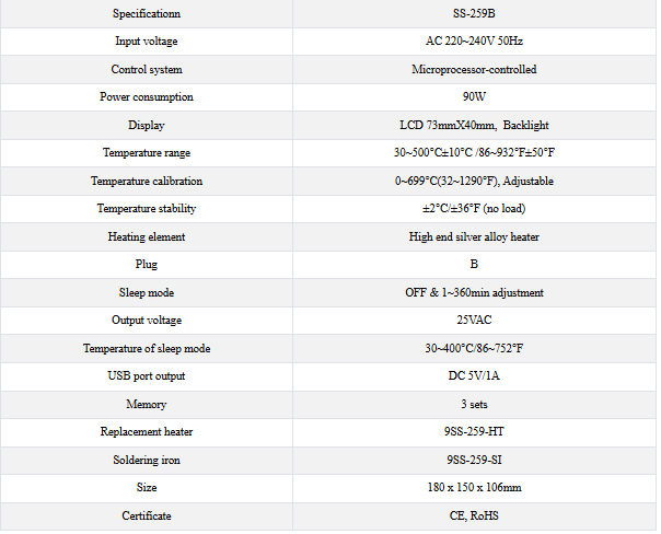 Auto sleep and wake up function, system lock, tip calibration and low consumption.