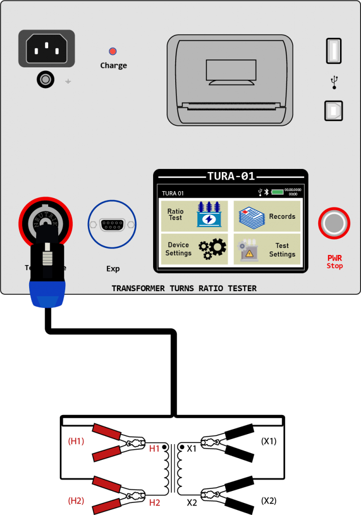 TURA-01 instrument has a single-phase cable configuration, although users may still perform three-phase transformer tests by connecting cables for each phase one by one.