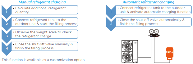 Compared to manual refrigerant charging, automatic refrigerant charging greatly simplifies the process, making installation and maintenance easier and more efficient.