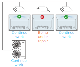 The maintenance mode allows the shutdown of some indoor units without shutting down the whole VRF system, and it can be activated on site during the maintenance period as the remaining indoor units continue to operate.