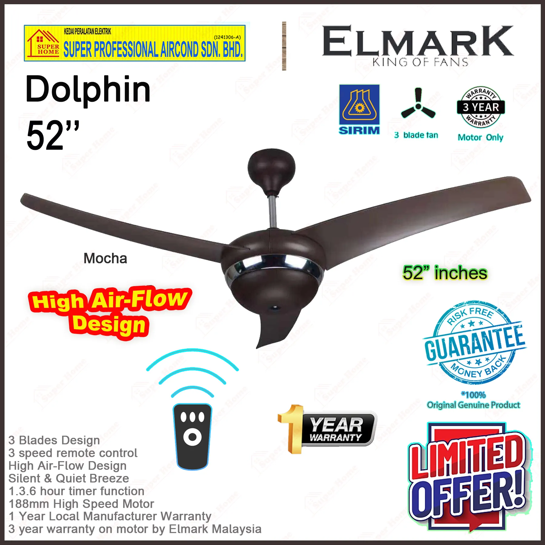 Elmark Ceiling Fan Dolphin (Mocha) 52 inches Remote Control Ceiling Fan (Mocha)
