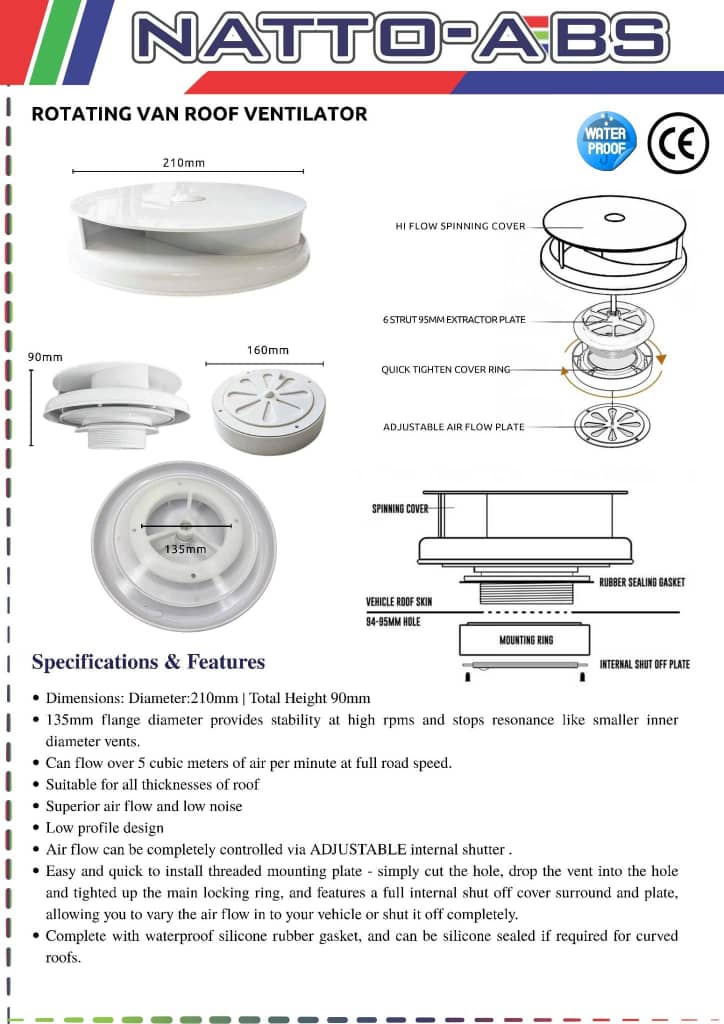 Introducing the NATTO-ABS Rotating Van Roof Ventilator – designed for maximum airflow, low noise, and easy installation.