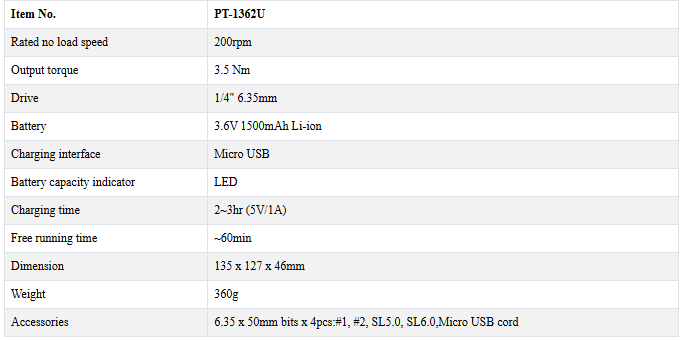 PRO'SKIT PT-1362U 3.6V LI-ION USB CORDLESSSCREWDRIVER