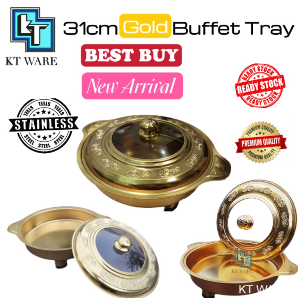 KT WARE 31CM GOLD BUFFET EMBOSSED BUFFET TRAY SET / BUFFET FOOD TRAY SERVING TRAY FOOD PAN KENDURI SET CATERING
