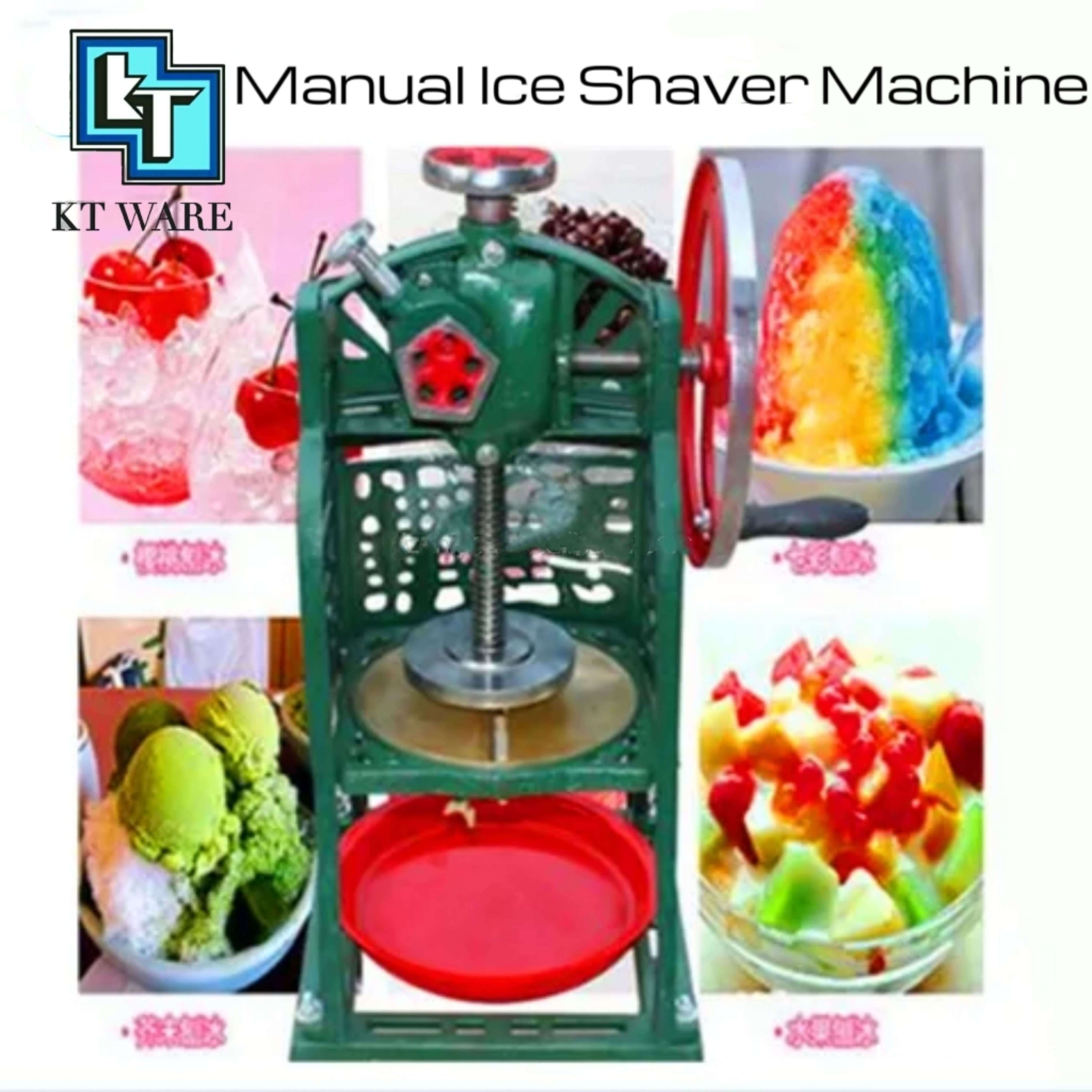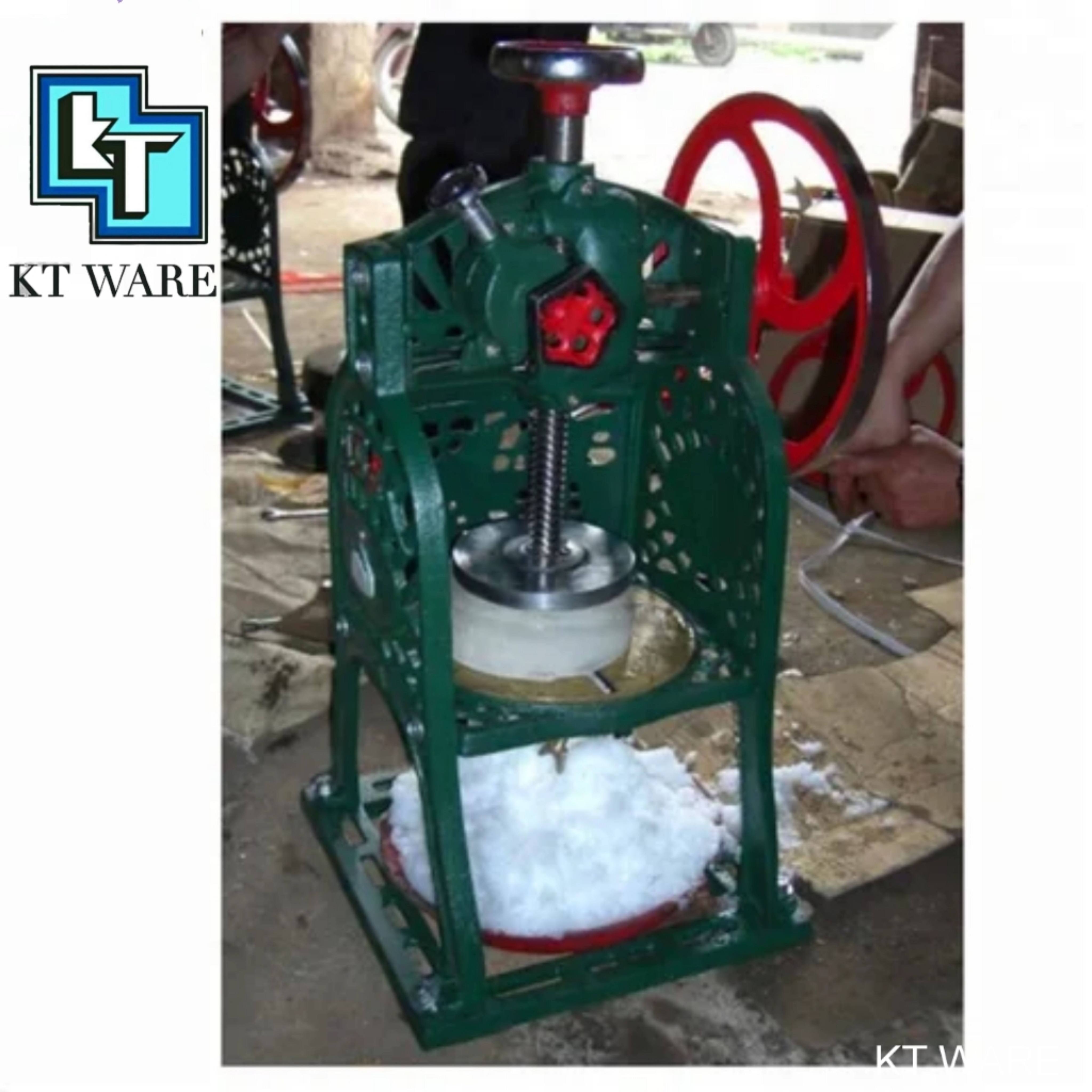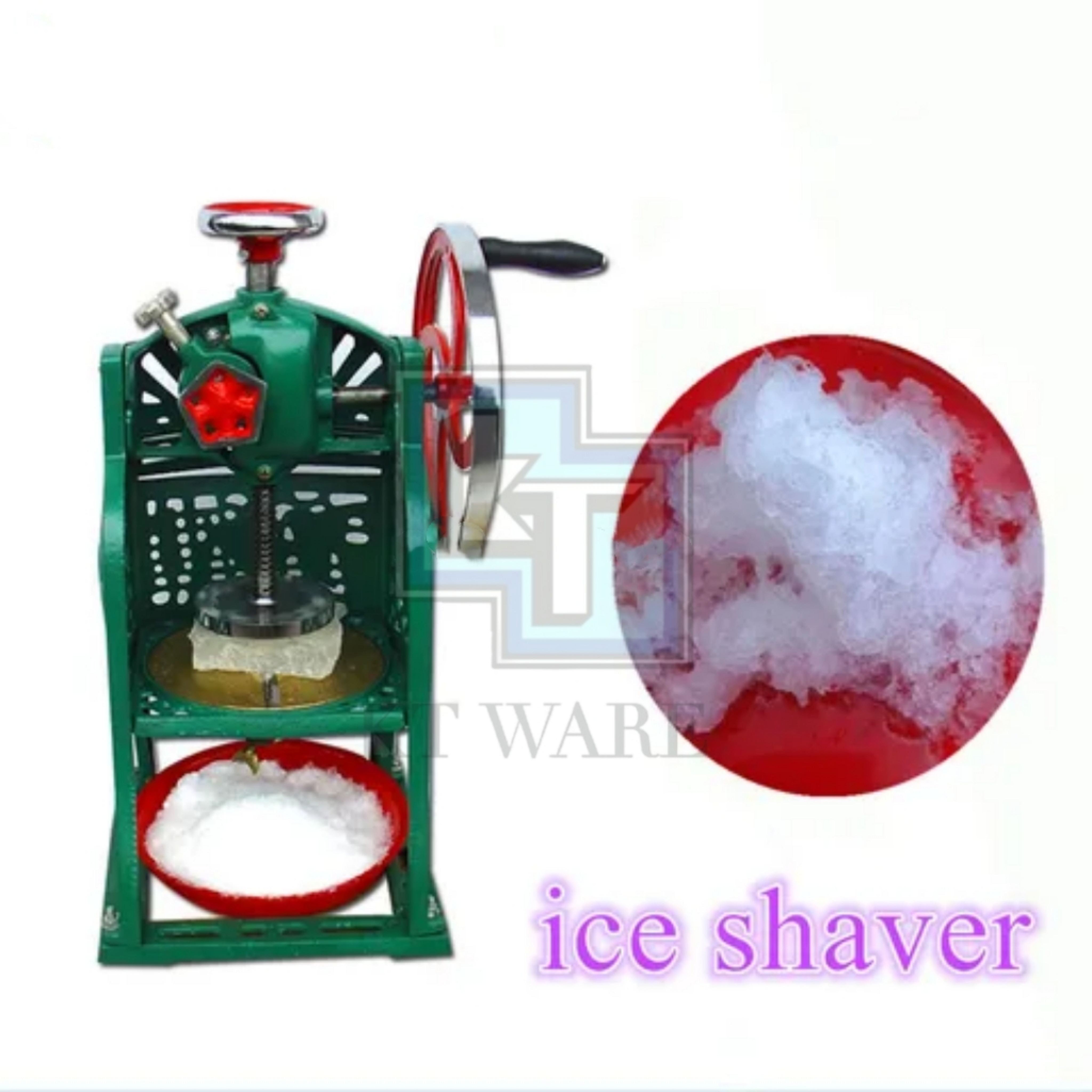 Hand operated ice shaving machine, the color is green, the material is cast iron and copper