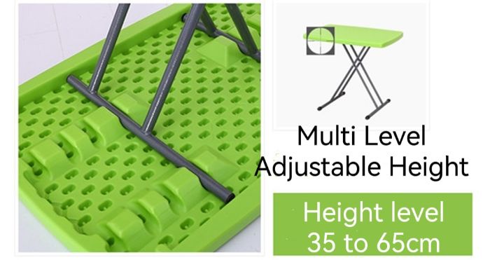 " Light-weight and fold in half design with carry handle makes this table easy to move and store almost anywhere, perfect for parties, picnics or camping.