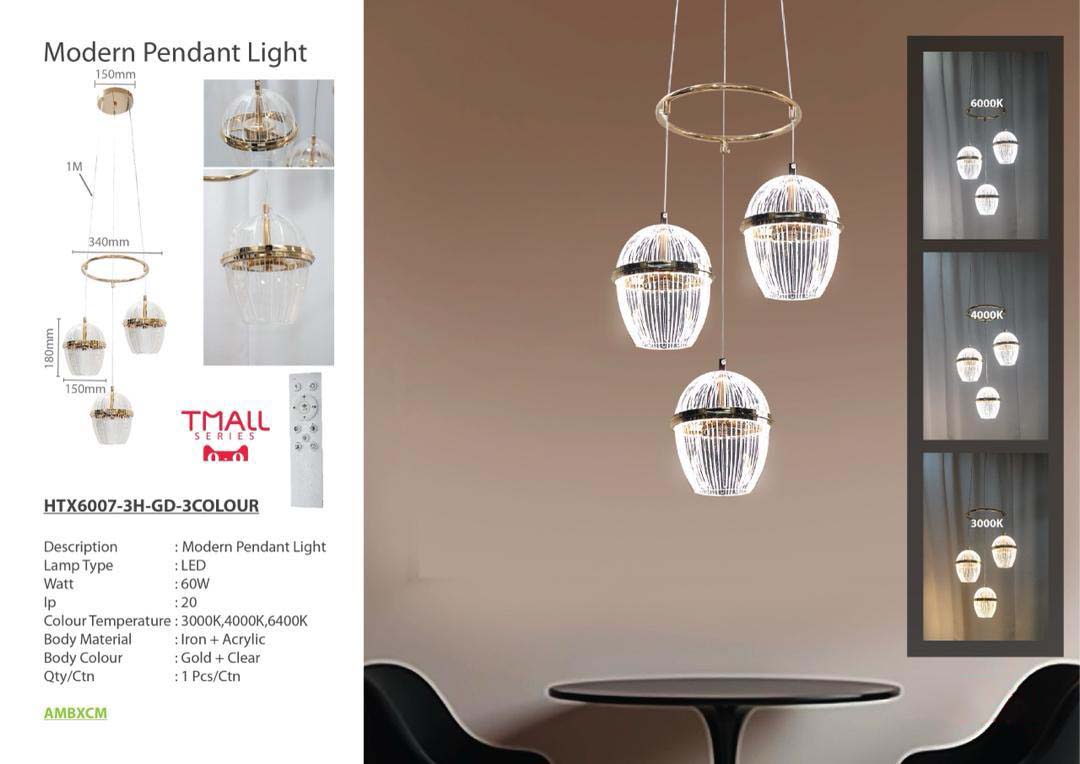 Multiple Pendant Light (HTX6007-3H-GD-3COLOUR)