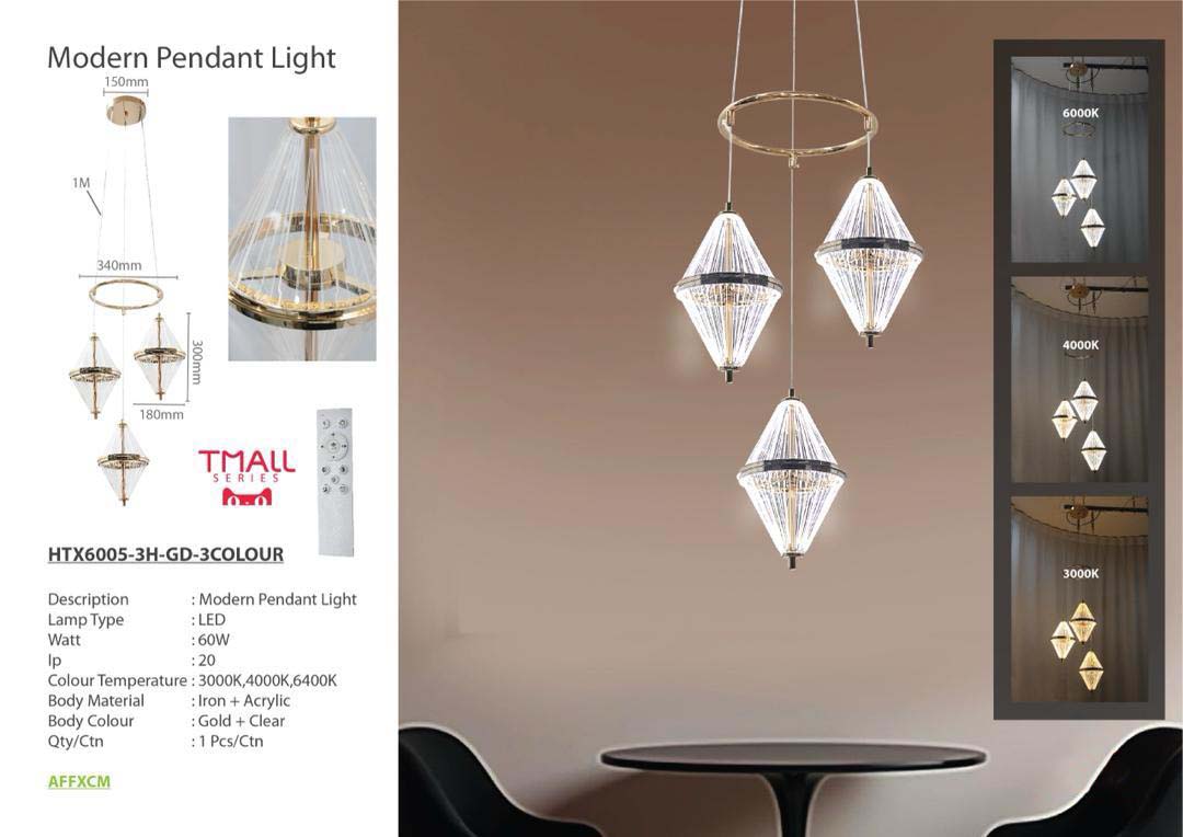 Multiple Pendant Light (HTX6005-3H-GD-3COLOUR)