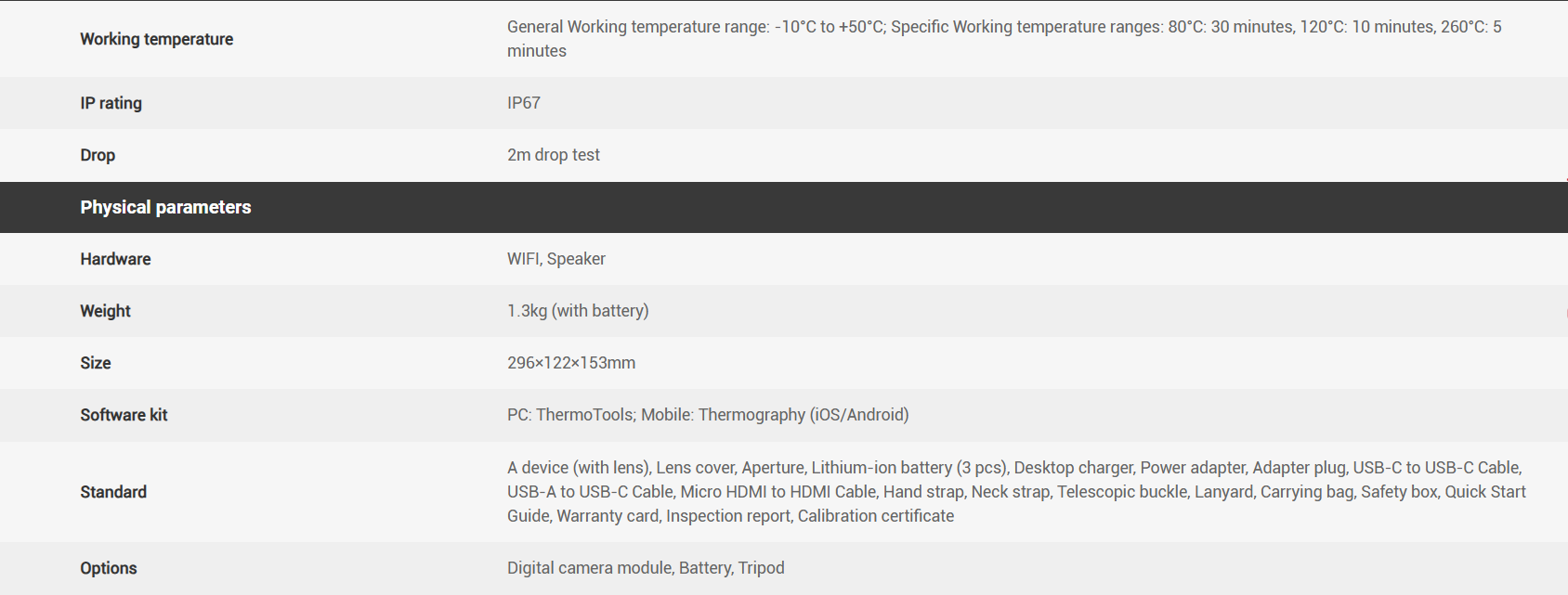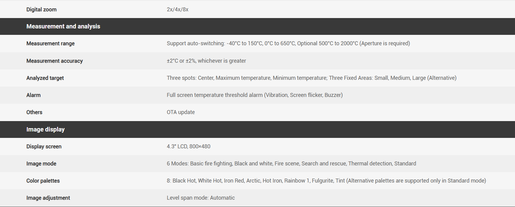 Measurement Range: Support auto-switching, -40°C~150°C, 0°C~650°C, 500°C~2000°C (Aperture is required)