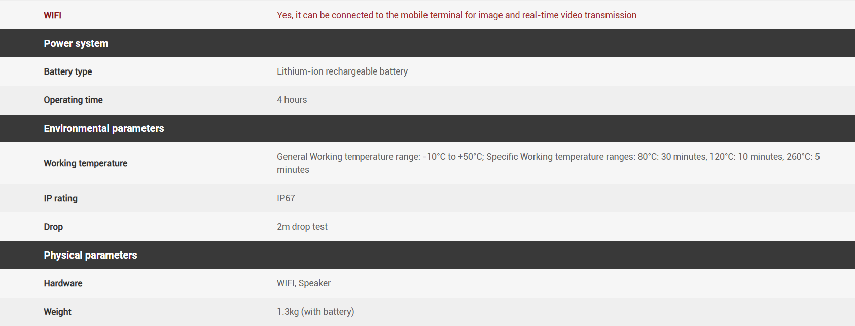 PR II series dual-purpose thermal imaging camera for rescue and detection empowers a new perspective for firefighters. The product is certified as Intrinsic Safety Explosion-Proof. It combines high resolution, a large display screen, multiple scene modes, temperature analysis functions, and a strong protection rating, which can break through the limitations of harsh environments such as high temperatures, high humidity, and thick smoke in fire scenes to help firefighters see the surrounding environment quickly and clearly, locate the fire and search for trapped individuals more accurately, providing users with more efficient and safe fire visualization solutions.