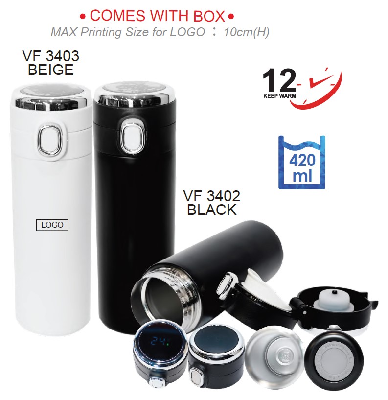 Material: Stainless Steel 304 (Inner) with Smart LED Indicator — Keeps beverages hot/warm/cold for hours, shows the real-time temperature of contents, combines modern technology with durable and travel-friendly design, offers premium food-grade safety.