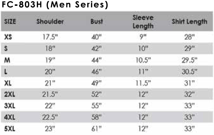 SIZE CHART :