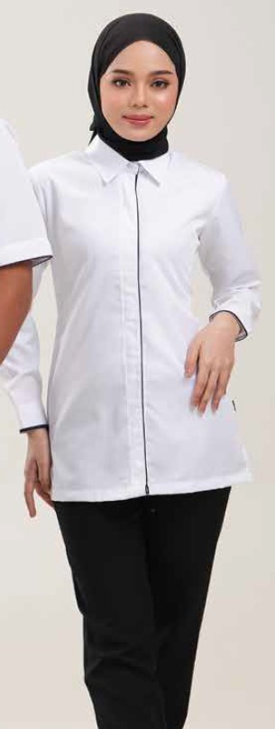 Content : 80% Tetron + 20% Rayon — A fabric blend of softness, enhanced durability, and wrinkle resistance for long-lasting professional wear.