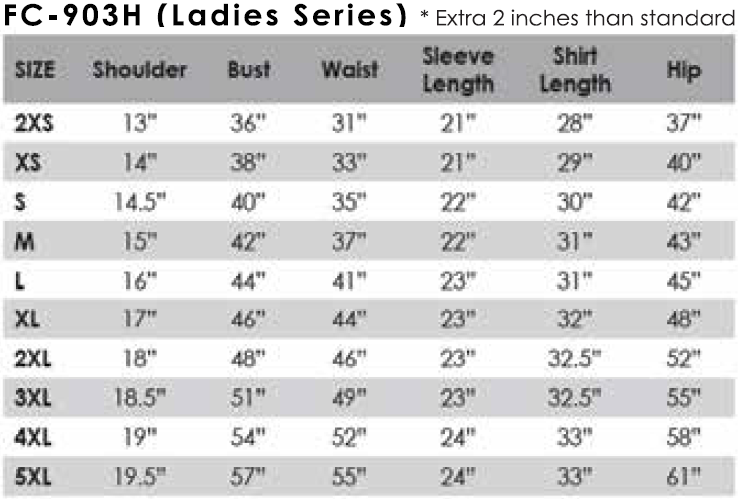 SIZE CHART :