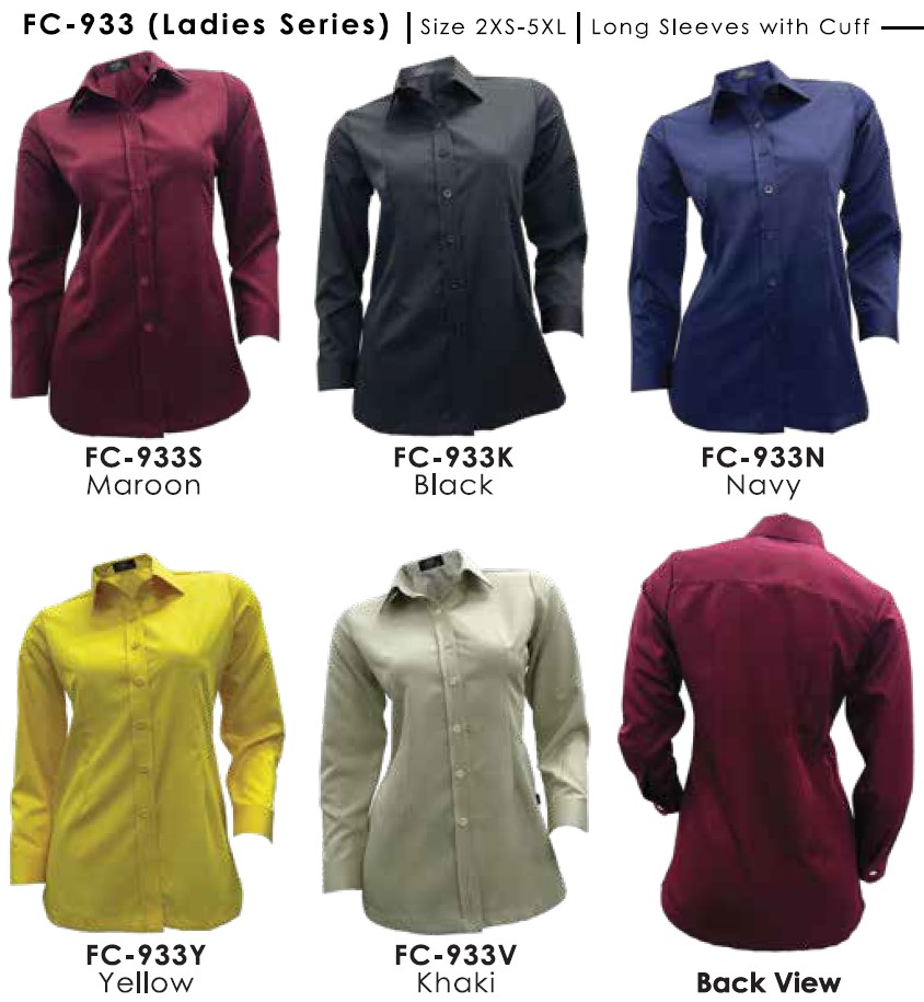 FC-933 ― Polycotton Corporate Uniform Ladies Series Long Sleeves with Cuff 170gsm