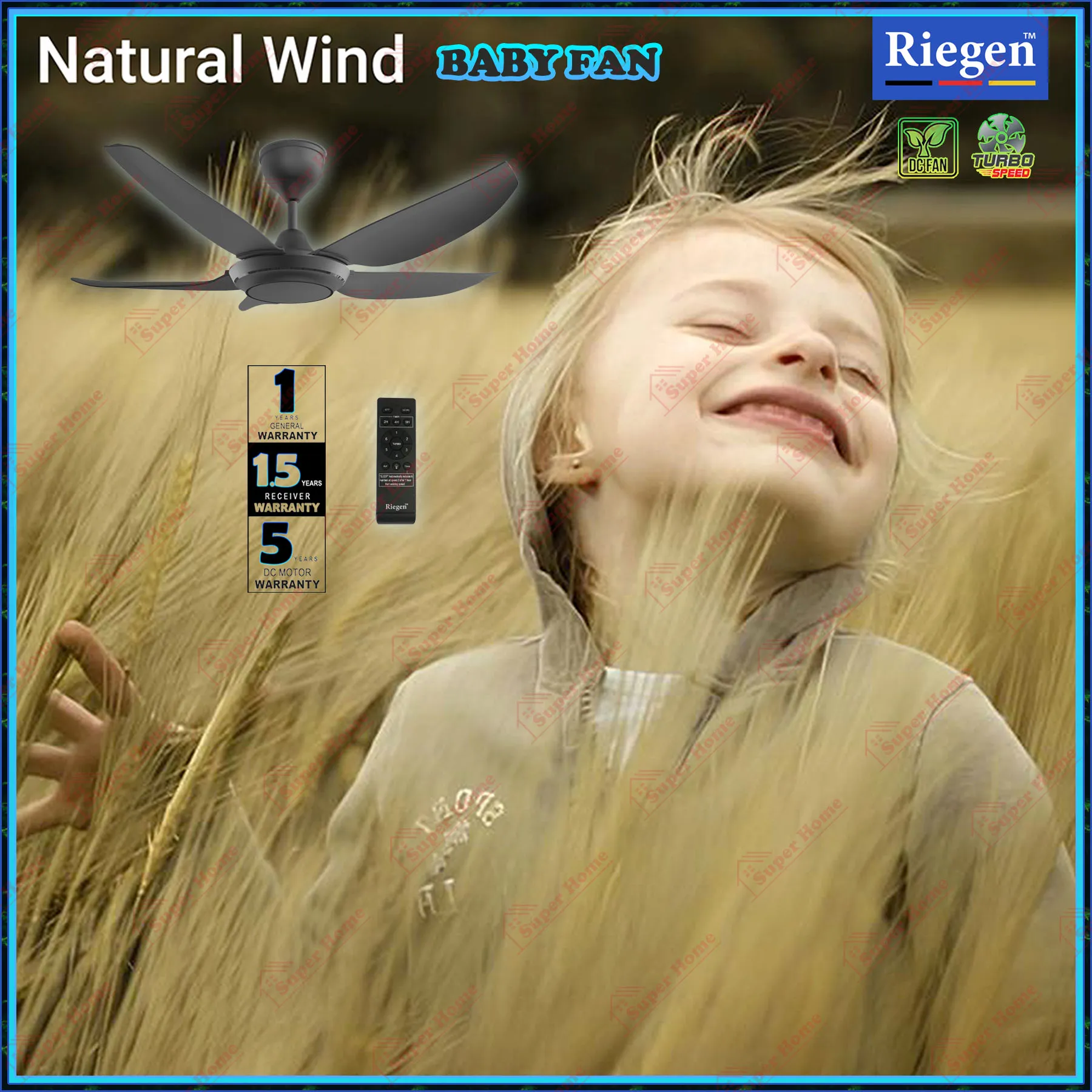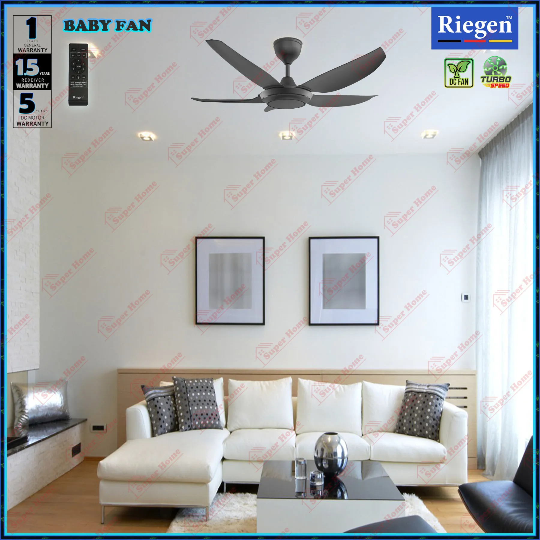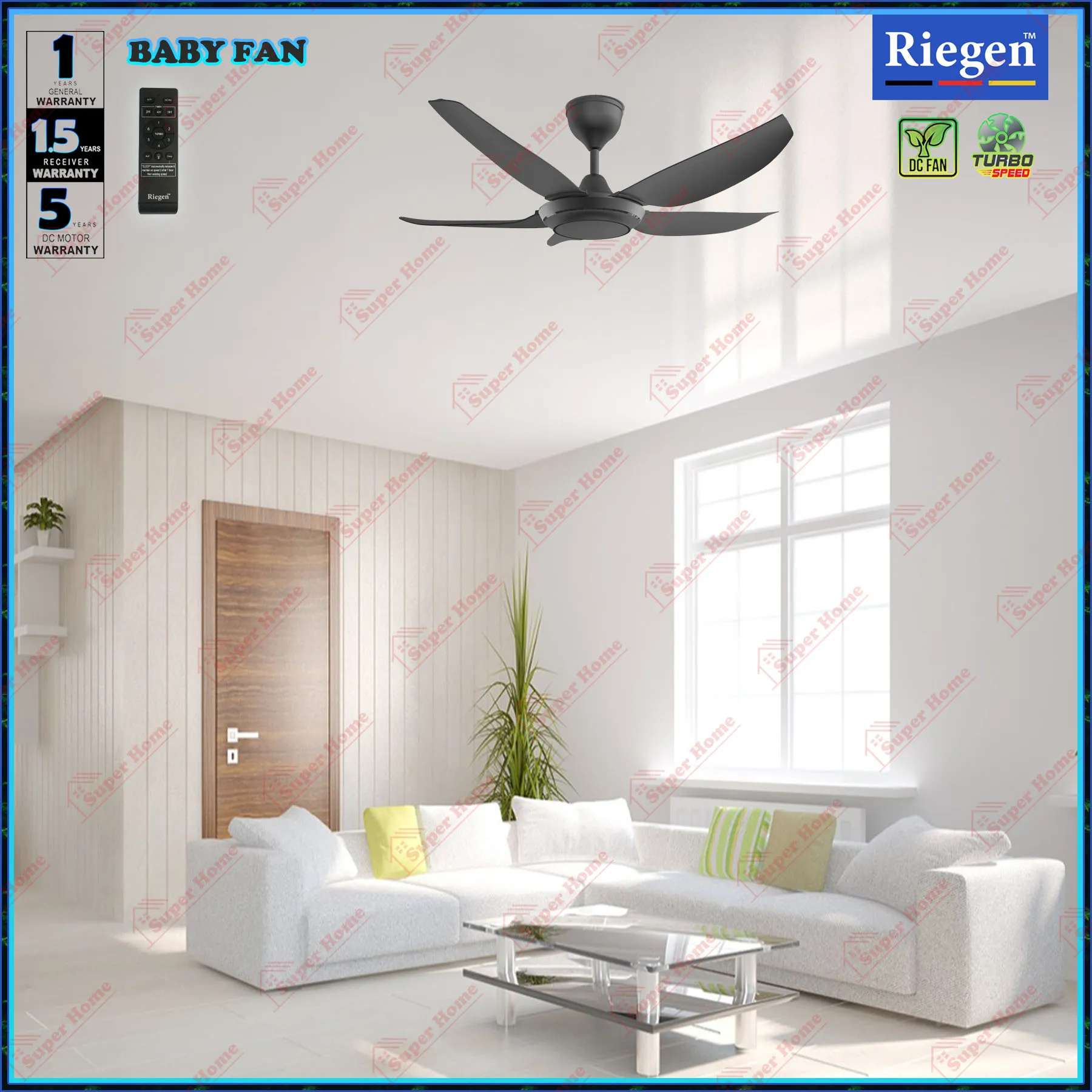 Riegen Baby Fan NEO 41 RCF-L.NEO41-5B-MB Ceiling Fan with Remote Control 41 Inch 7-Speed DC Motor Ceiling Fan (Matte Black)