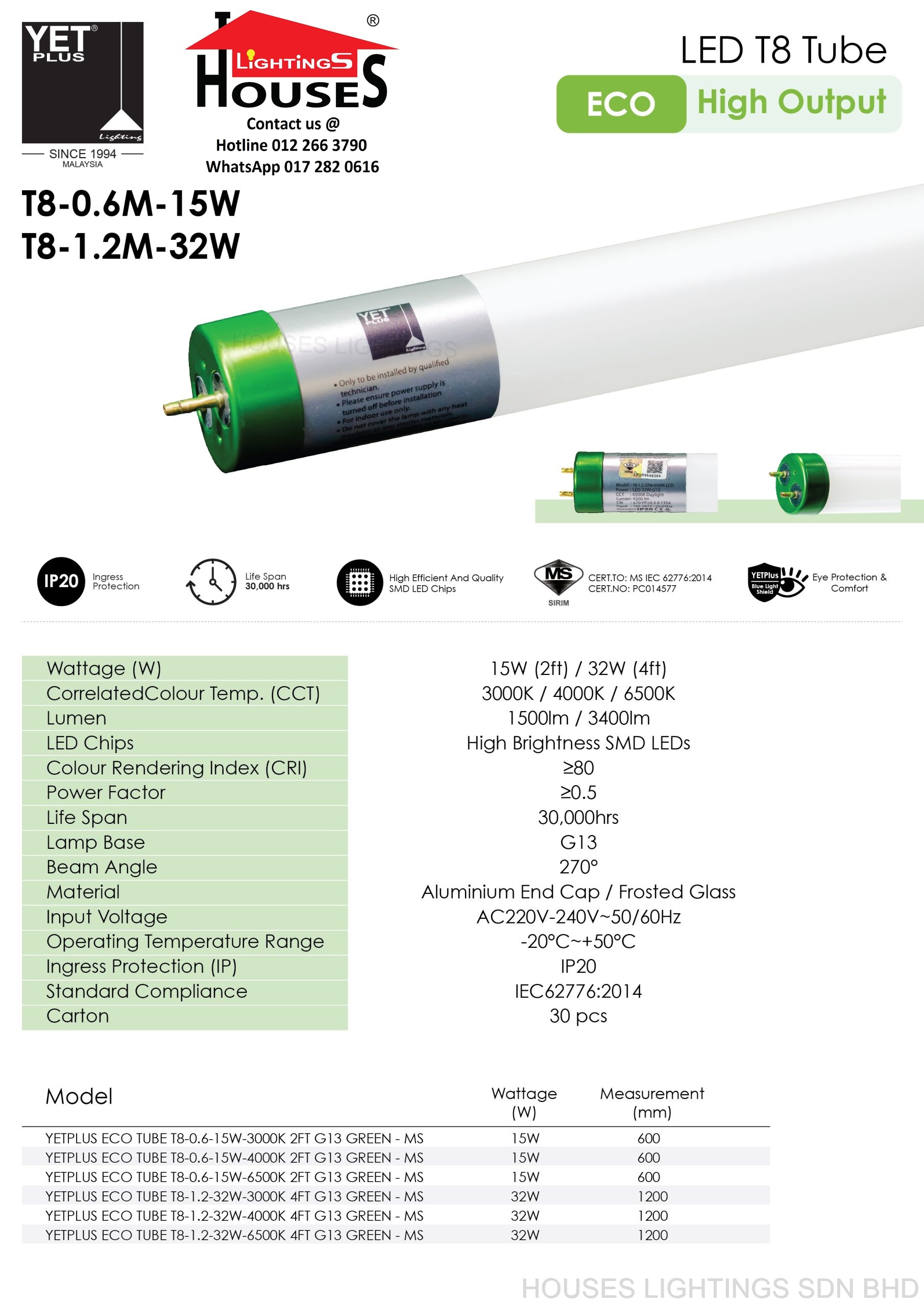 YET (ECO) LED T8 TUBE - 2FT 4FT - 15W 32W