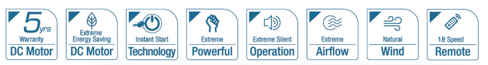 Upgrade Your Space with REZO LORCA! This 23-inch DC Motor fan delivers whisper-quiet, 5-Star energy efficiency with 18 variable speeds for all-season comfort. Integrated 18W 3C LED light provides customizable illumination. Stylish, compact, and powerful for modern Malaysian homes.