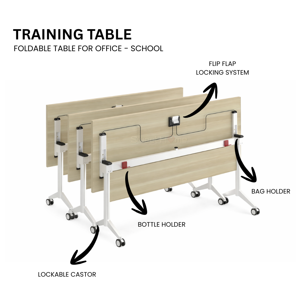 The TRH Foldable Training Table is designed for flexibility, space efficiency, and durability—making it ideal for training rooms, classrooms, seminar halls, and multipurpose office environments. Featuring a foldable tabletop with castors, this table allows easy rearrangement and storage without compromising stability or aesthetics.