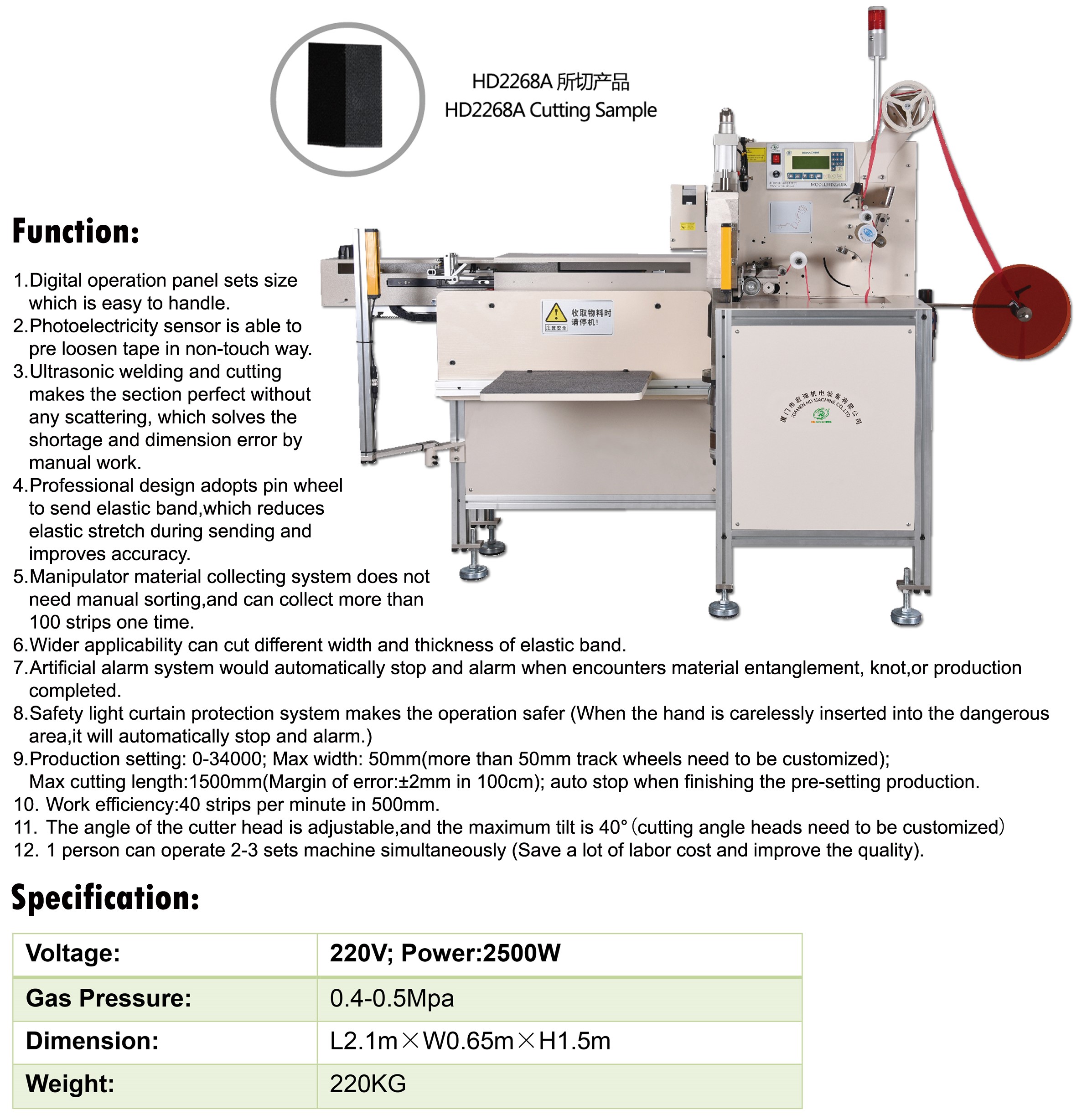 ULTRASONIC AUTO ELASTIC CUTTING MACHINE