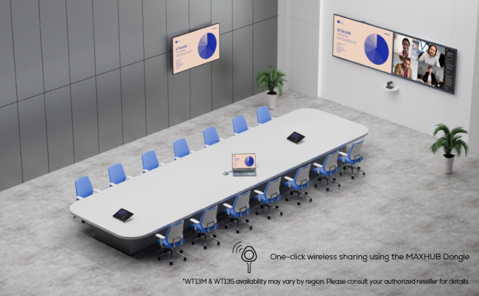 The new bundle facilitates a seamless dual-screen display for meeting spaces. Easily initiate wireless content sharing with a single click using the MAXHUB Wireless Dongle,or enjoy exclusive 4K sharing cia wired connections.