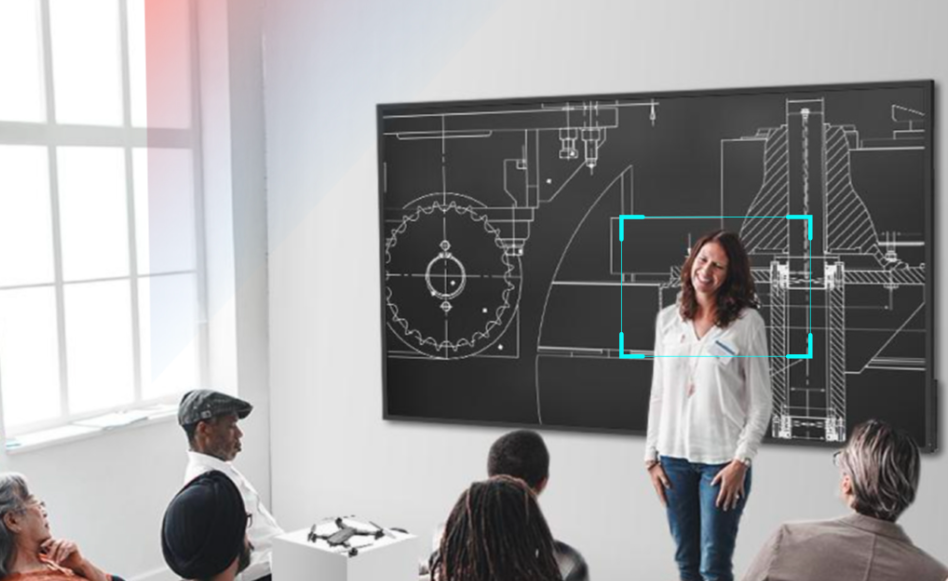 Presenter Tracking ensures the presenter remains centered by dynamically following them during a presentation, providing remote participants with an immersive experience.