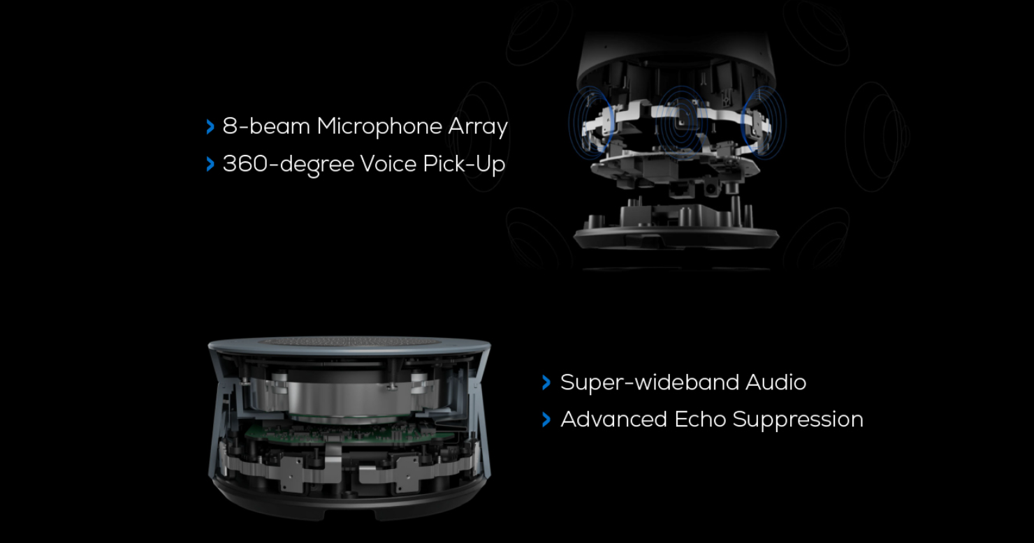With a dual-eye 4K camera design, the panoramic camera detects every movement in the meeting room, while the PTZ camera ensures accurate capture of attendees at all times.