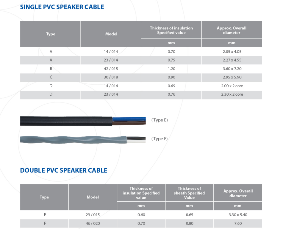 FAJAR PVC SPEAKER CABLE 70°C [SINGLE CABLE/DOUBLE CABLE] [TYPE A/ TYPE B/ TYPE C/ TYPE D/ TYPE E/ TYPE F]