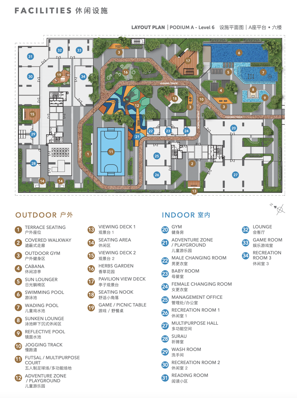 | Facilities Deck | Level 4 multi-generational deck with pools, gym, sports courts, playgrounds, co-working and social spaces |