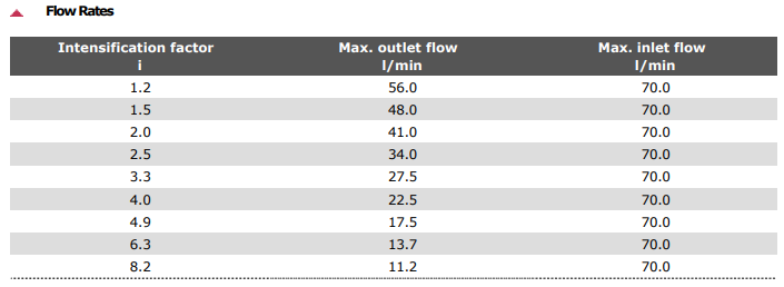 The HC6D is a high flow dual acting unit which is capable of up to 56.0 l/min flow on the high pressure end. Like other miniBOOSTER models, the HC6D raises supplied pressure to a higher outlet pressure and automatically compensates for consumption of oil to maintain the high pressure. Adjustment of the outlet pressure is carried out by varying the supplied pressure. Relative to its flow capability, the HC6D is a compact unit weighting 20 kg