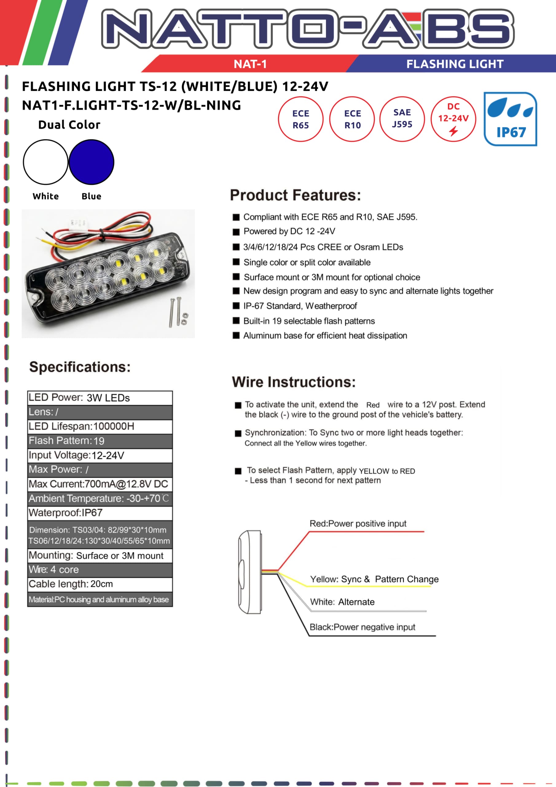 Upgrade your vehicle's warning system with our heavy-duty Dual Color (White/Blue) Flashing Light TS-12. Whether you're outfitting a security fleet, utility truck, or emergency vehicle, this light is engineered to perform in the toughest conditions.