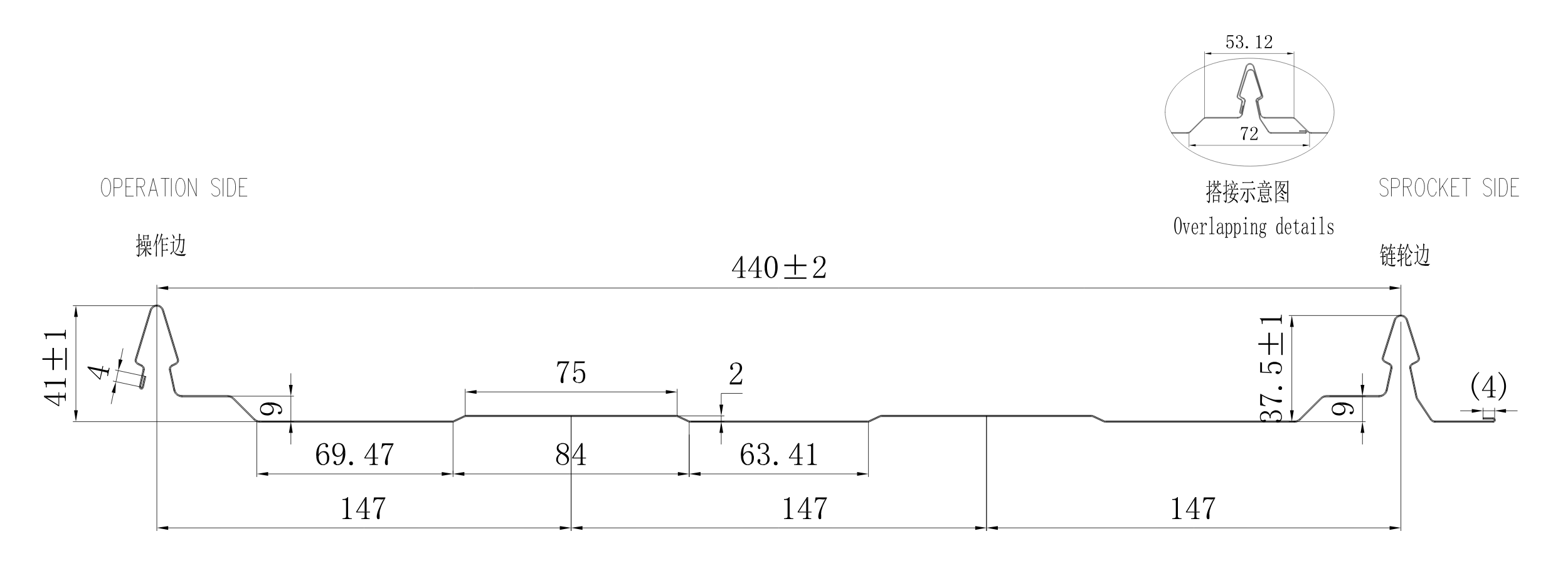 DIMENSIONS : Effective Width 440 mm, Rib Height 40mm, Minimum Roof Pitch 2º