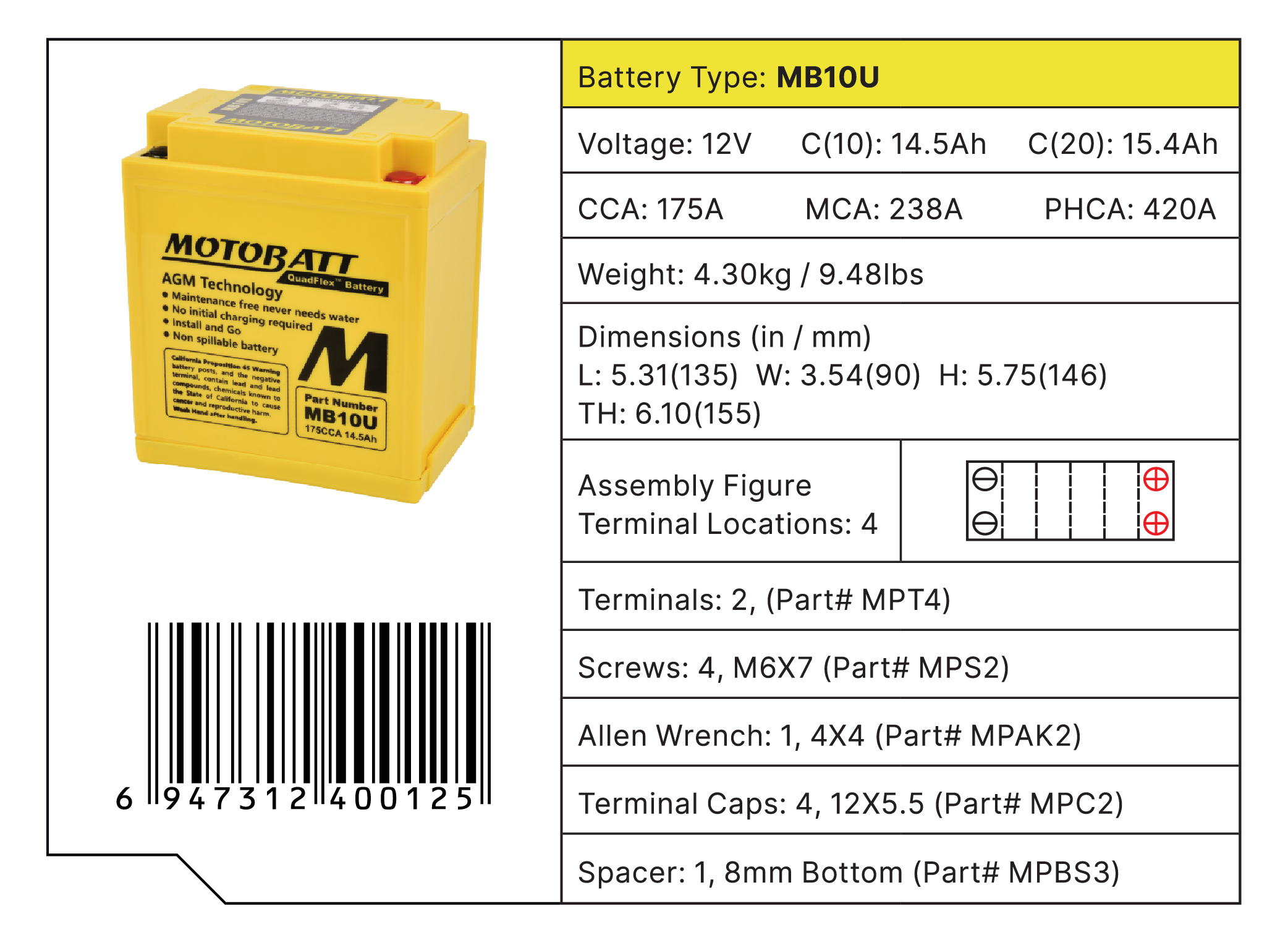 Features 4 terminals for flexible mounting and wider compatibility with various motorcycle models.
