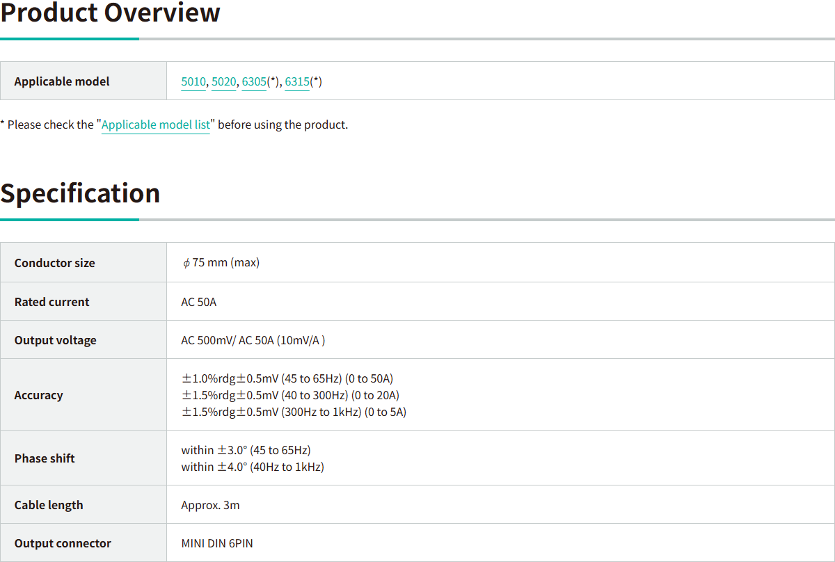 - Can measure AC current up to 50A