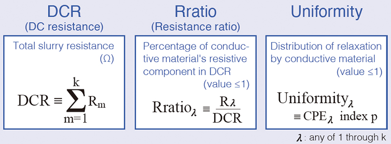 • Quantitative evaluation of electronic conductivity using DCR, Rratio, and Uniformity
