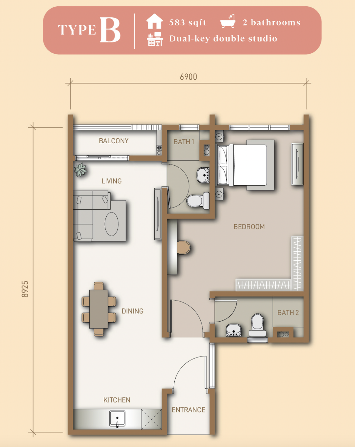 Type B - 592 sf (Dual-Key)
