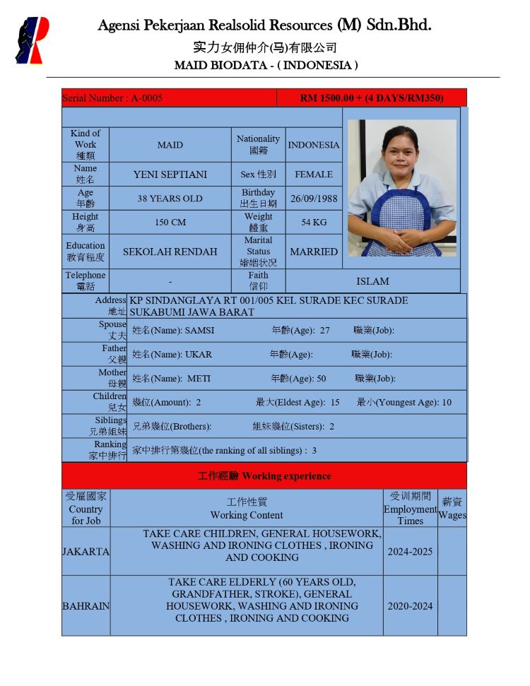 Maid Agency Malaysia, Masai, Johor Bahru (JB) - Agensi Pekerjaan Realsolid Resources (M) Sdn Bhd
