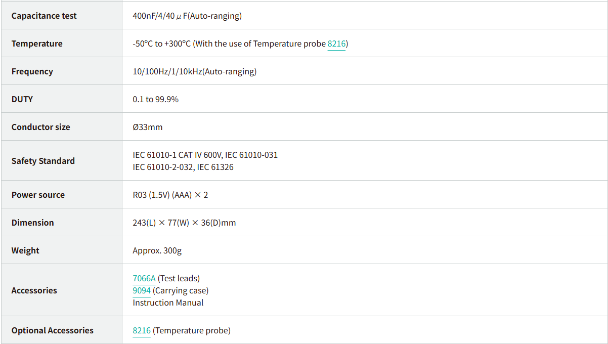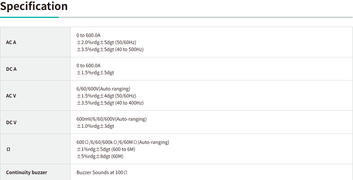 - Red LED, as “Non Contact Voltage” function, gives warning to the user on the presence of AC voltage