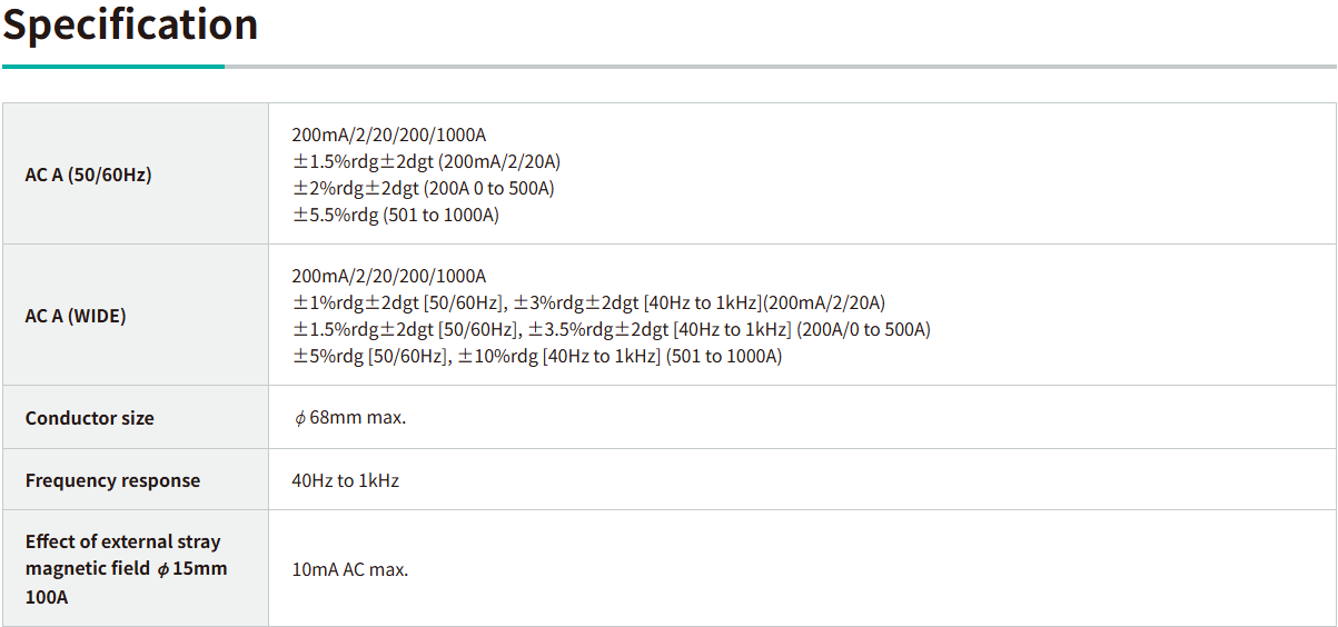 - Large transformer jaws of 68mm diameter makes it possible to clamp on all three or four wires (3 phases) together for leakage current measurement