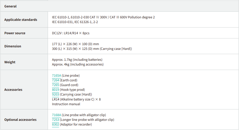 • Safety standard IEC 61010-1 CAT Ⅳ 300V / CAT Ⅲ 600V
