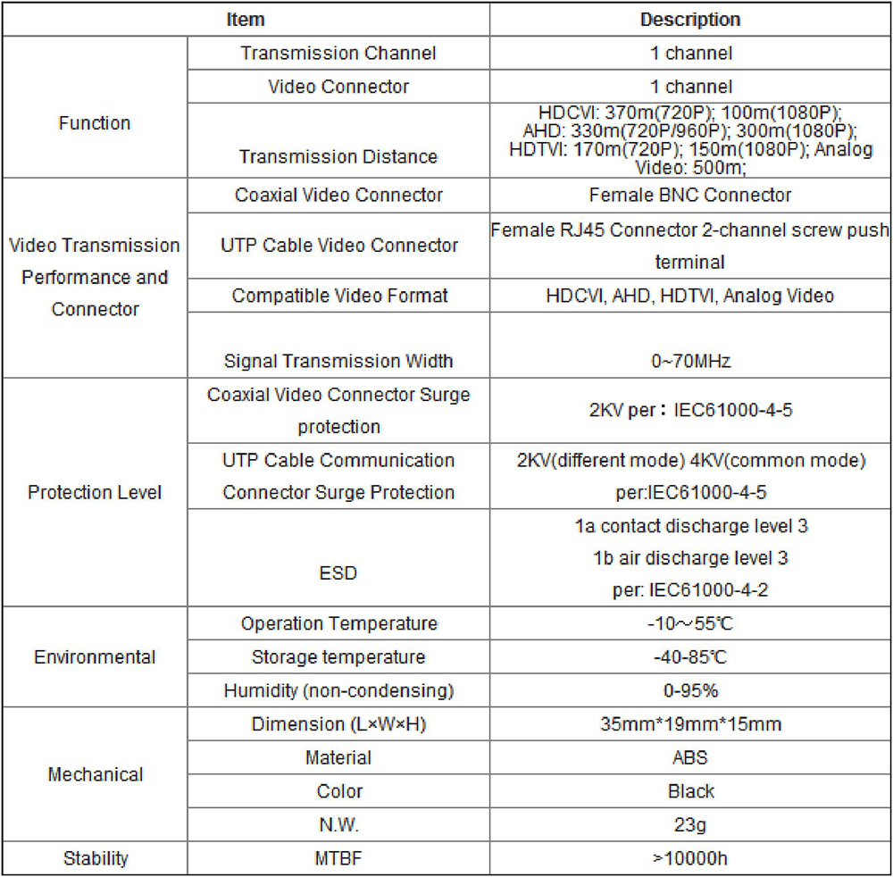 Passive Analog HD Video Balun UTP101P-HD Specifications More details please download the full catalog.