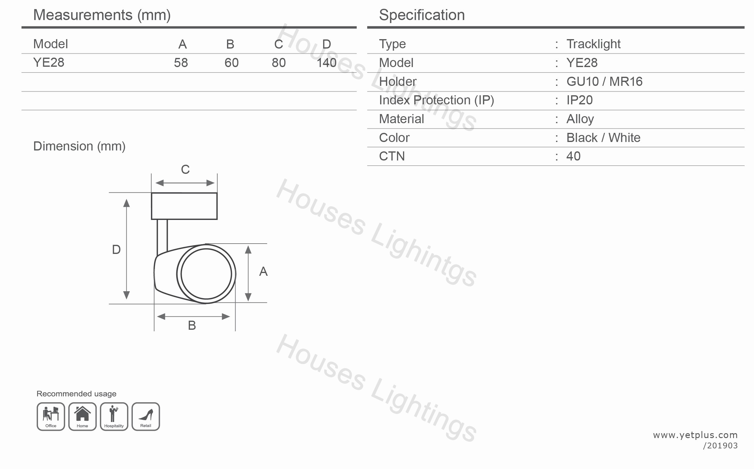 YET YE28 BK WH GU10
