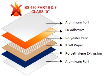 FIRE RETARDANT DOUBLE SIDED REFLECTIVE ALUMINIUM PAPER FOIL, POLYSTER YARN REINFORCED