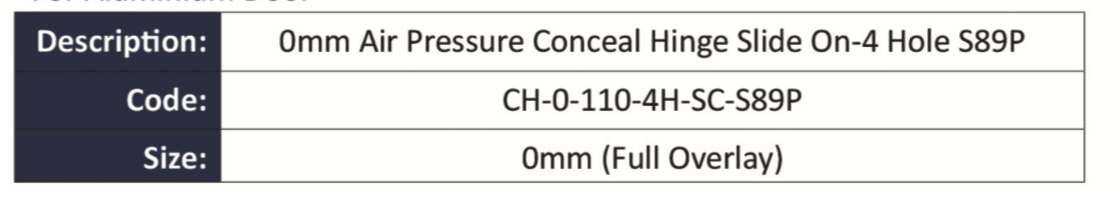 0MM AIR PRESSURE CONCEAL HINGE SLIDE ON-4 HOLE S89P