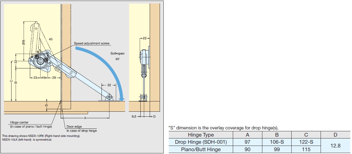 ● For upward-opening lids (upper kitchen/bathroom cabinets, etc.)
