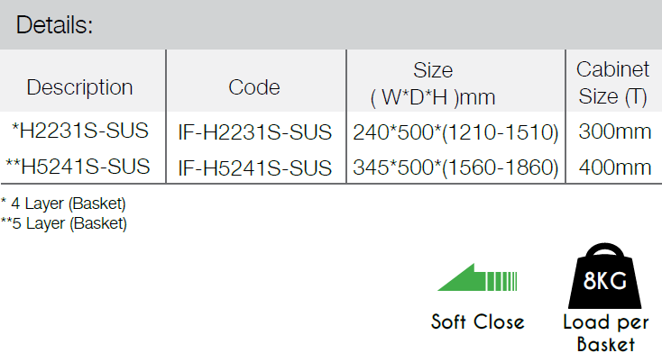 TALL UNIT PULL OUT BASKET WITH SOFT CLOSING SLIDE (SUS304)