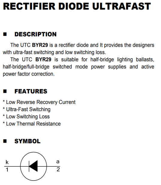 UTC - BYR29 RECTIFIER DIODE ULTRAFAST
