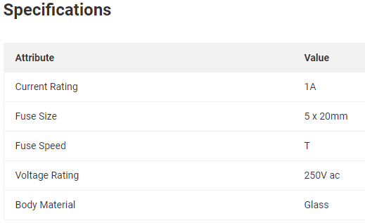 SUN FUSE - SLOW BLOW 5T-1A 250V